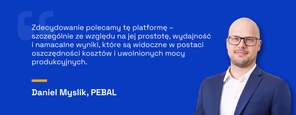 - Dzięki zaoszczędzonemu czasowi na administrację, 0,5 etatu zostało przeniesione do działu zakupów – co PEBAL postrzega jako dużą korzyść.